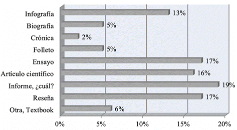 Frecuencia de los géneros discursivos solicitados, según la encuesta