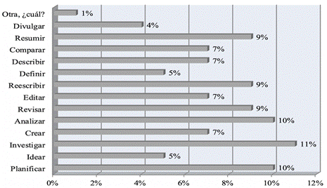 textos es investigar, pero con un porcentaje nada alejado de planificar